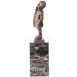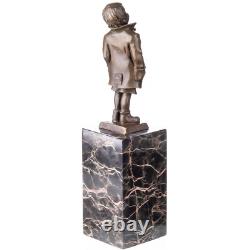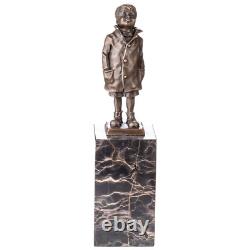 Bronze sculpture of a boy with a coat on a marble base after Nick. Signed piece, crafted from exclusive material—bronze, with meticulous attention to the smallest details. The sculpture is mounted on a black marble base. It makes a significant aesthetic impression and possesses a timeless style. If you need anything, feel free to contact us.