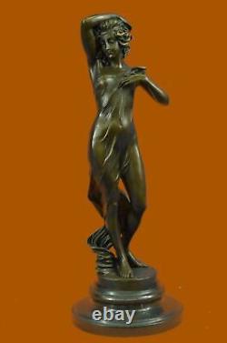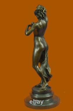 Whether displayed in a home or gallery, this bronze young girl is sure to captivate and inspire. Her timeless beauty and expert craftsmanship make her a remarkable addition to any art collection or interior space, where she will continue to enchant and fascinate all who see her. Hot Cast Bronze Sculpture Statue Lady on Marble Base Signed J. Paste the link into a browser window. The brown patina finish not only adds depth and character to the piece but also ensures its preservation for generations to come.