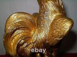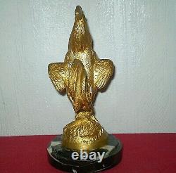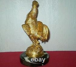 BRONZE SIGN MAURICE FRECOURT singing rooster on marble base