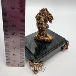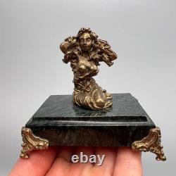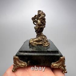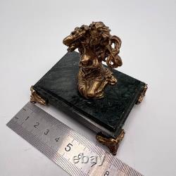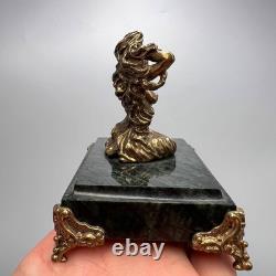 Gracefully kneeling, this sculpture rests on a polished green marble base, adorned with decorative bronze feet, merging mysticism, craftsmanship, and classical symbolism. Materials: Solid bronze on polished marble base. Total height: 7.5 cm. Base dimensions: 8 × 6 cm. Condition: Excellent vintage condition - no flaws, no restoration.Style: Classic & esoteric - ideal for mystical interiors, zodiac collectors, or personal altars. This piece symbolizes the pure and introspective energy of the Virgo sign. The graceful posture and flowing hair of the young woman reflect a deep connection to the earth, order, and balance. The green marble, associated with stability and nature, enhances the earthly essence of this zodiac sign.