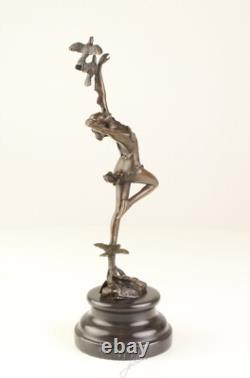Sculpture of a Dancer with Bird on Marble Base after Aldo Vitaleh. Signed Sculpture, made of exclusive material-bronze, very precisely, with attention to the smallest details. Mounted on a black marble base. The sculpture makes a great aesthetic impression and has a timeless style.