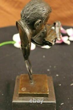 Crafted using the ancient "lost-wax method," this fine and unique abstract sculpture showcases meticulous details and is finished in a brown patina for preservation. The 100% handmade bronze masterpiece is mounted on a black marble base, enhancing its visual appeal. The signature of the artist Milo is a mark of authenticity, emphasizing the quality and craftsmanship of this musical creation.