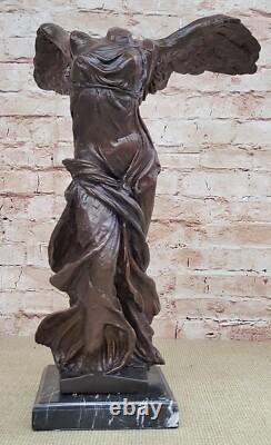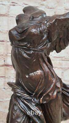 Signed Winged Victory of Samothrace Bronze Sculpture on the marble base decor. This sculpture is in perfect condition.