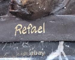 Adorned with a captivating brown patina, this sculpture exudes elegance and timeless beauty. It bears the signature of the talented artist Rafael, whose mastery brings this remarkable work of art to life.