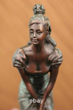 This sculpture is in perfect condition. Dimensions of the bronze with marble base: height 12 1/2" x width 3". Dimensions of the marble: 5" x 3".