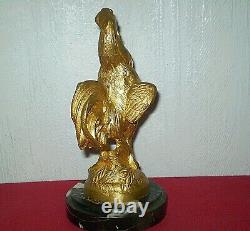 BRONZE SIGNE MAURICE FRECOURT coq chantant sur socle en marbre