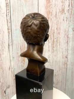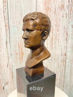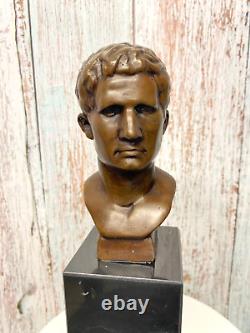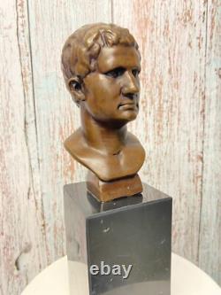 Buste César Auguste en bronze sur un marbre noir d'après Milo. Sculpture signée, réalisée en matériau exclusif-bronze, très précisément, avec une attention aux moindres détails. La sculpture fait une grande impression esthétique et possède un style intemporel. Si vous avez besoin de quoi que ce soit, n'hésitez pas à nous contacter. Caesar Augustus bust in bronze on black marble after Milo.