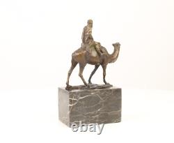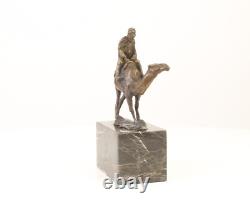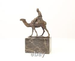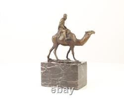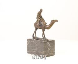 Sculpture Chameau et Cavalier Style Arabic bronze sur un marbre d'après Carvin