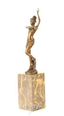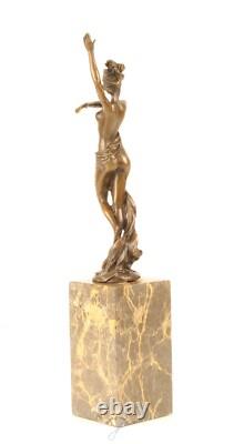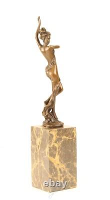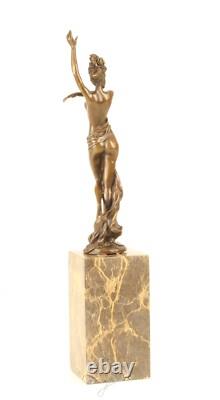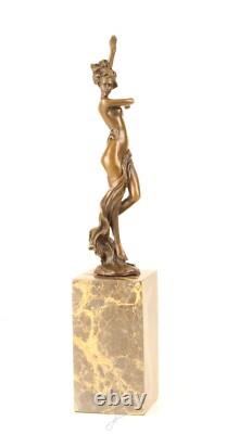 Sculpture danseuse nue en bronze sur socle en marbre noir d'après Milo. Sculpture signée, réalisée en matériau exclusif-bronze, très précisément, avec une attention aux moindres détails. La sculpture fait une grande impression esthétique et possède un style intemporel. Si vous avez besoin de quoi que ce soit, n'hésitez pas à nous contacter. Sculpture of a Dancer with Bird on Marble Base after Aldo Vitaleh.