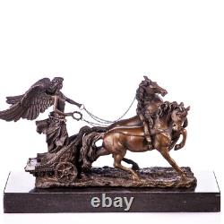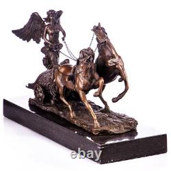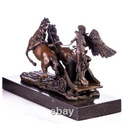 Sculpture en bronze d'un ange sur un char sur un marbre noir Signée. Sculpture signée, réalisée en matériau exclusif-bronze, sur un socle en marbre noir très précisément, avec une attention aux moindres détails.
