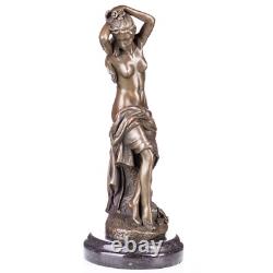 Sculpture Femme nue en bronze sur socle en marbre noir d'après Giovanni Bologna. Sculpture signée, réalisée en matériau exclusif-bronze, sur un socle en marbre noir très précisément, avec une attention aux moindres détails. La sculpture fait une grande impression esthétique et possède un style intemporel.