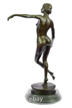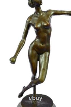 Elle s'étire et se prépare à lancer une balle de baseball. Elle est entièrement nue et montre sa silhouette élancée et ses seins ronds. 100 % bronze et faite à la main, cette sculpture à patine brune a été coulée selon la « méthode de la cire perdue » et montée sur un socle en marbre et est signée. La plupart des commandes sont expédiées dans les 24 à 48 heures suivant l'achat. Veuillez nous contacter avant d'effectuer des achats dans ces zones.Nous expédions également à l'international. Veuillez vous référer au tableau « Expédition et manutention » pour connaître les tarifs pour chaque zone.