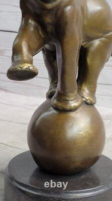 Veuillez trouver ci dessous une traduction automatique en français. Si vous avez des questions veuillez nous contacter. Cette sculpture est en parfait état.Dimensions en bronze avec base en marbre: hauteur 13 "x largeur 8". Dimensions en marbre: diamètre 5. Hauteur sans base: 11,5. Cette délicieuse sculpture en bronze présente un éléphant asiatique ludique debout sur trois jambes, avec sa jambe avant droite levée dans une posture en équilibre et vigilante. Cette charmante pièce est une véritable ouvre d'art qui peut améliorer l'ambiance de n'importe quelle pièce de votre maison.